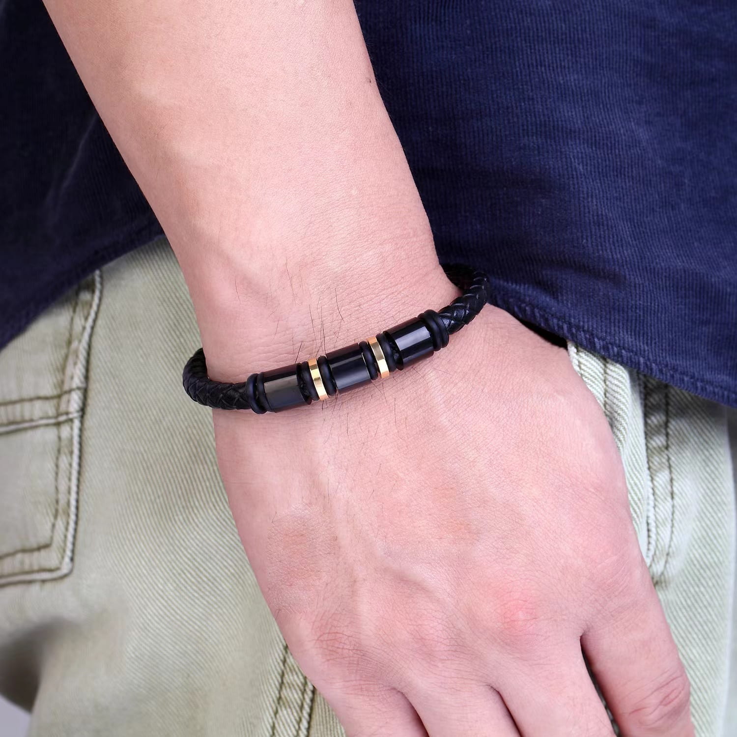 Męska bransoletka ze skóry naturalnej, wykonana z wysokiej jakości materiałów, która doskonale nadaje się jako prezent dla mężczyzn lub do codziennego użytku. Bransoletka ma stylowe zapięcie ze stali nierdzewnej, które zapewnia trwałość i wytrzymałość. Skórzana taśma jest miękka i wygodna w noszeniu, a stylowy design sprawia, że bransoletka jest idealna na każdą okazję. Wysoka jakość wykonania oraz materiałów użytych do produkcji zapewniają długotrwałą trwałość oraz odporność na czynniki zewnętrzne.
