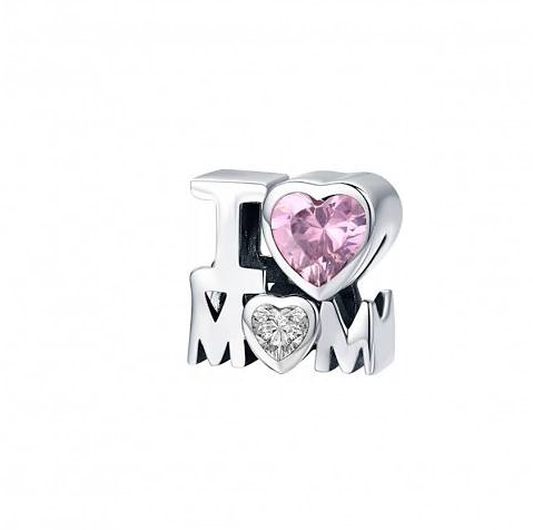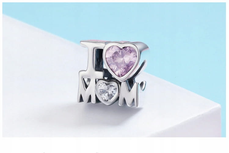 Piękny srebrny charms pasujący do bransoletek modułowych wszystkich znanych marek: KOCHAM SWOJĄ MAMĘ