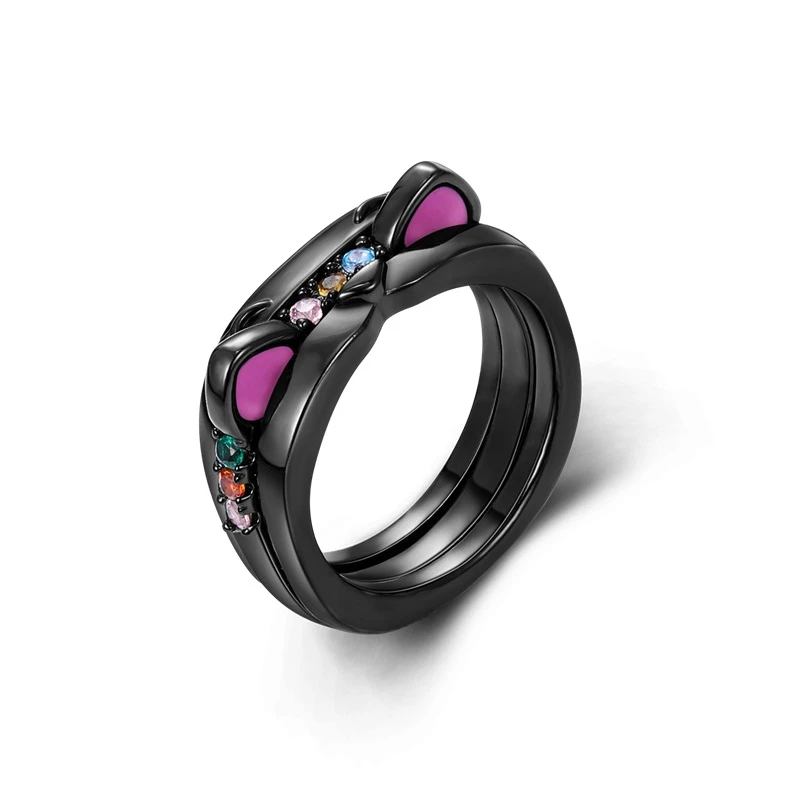 PIERŚCIONEK PODWÓJNY CZARNY KOTEK